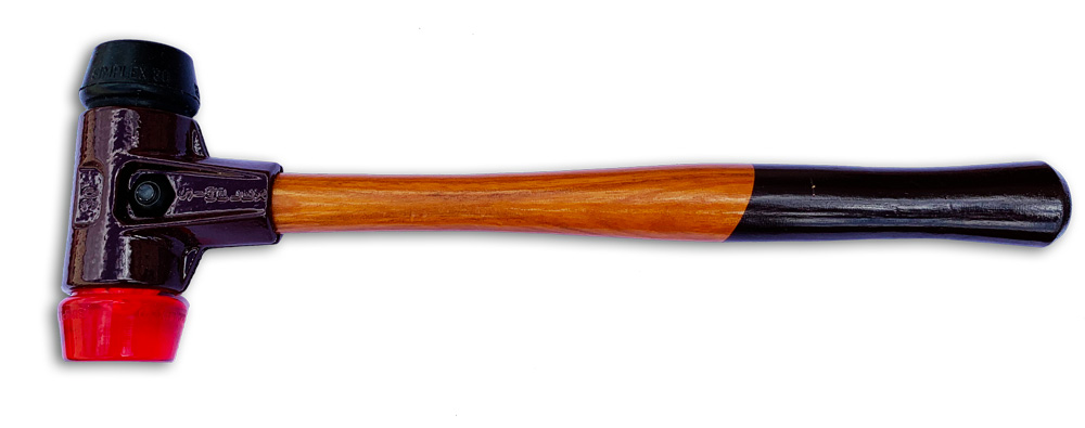 Schon- u. Diagnosehammer mit Tempogussgehäuse und hochwertigem Holzstiel, mit zwei verschiedenen Einsätzen, Gummikomposition schwarz, mittelhart und Plastik rot, hart, die Schlagflächen haben einen Durchmesser von Ø 30 mm. Besonders geeignet zum Abklopfen des Baumes zur Diagnostik des Baumzustandes.
