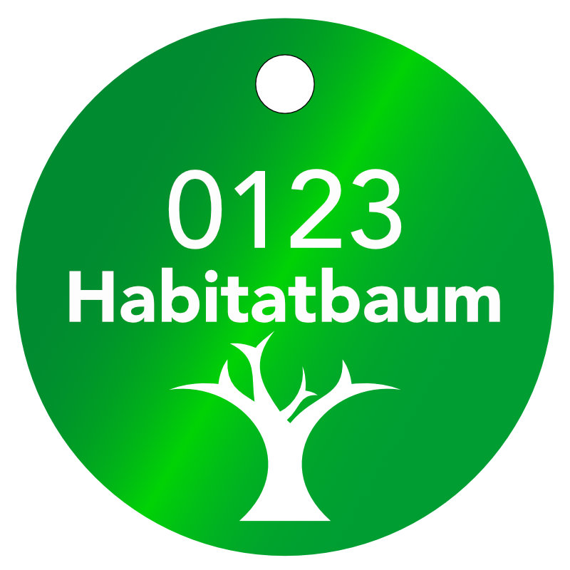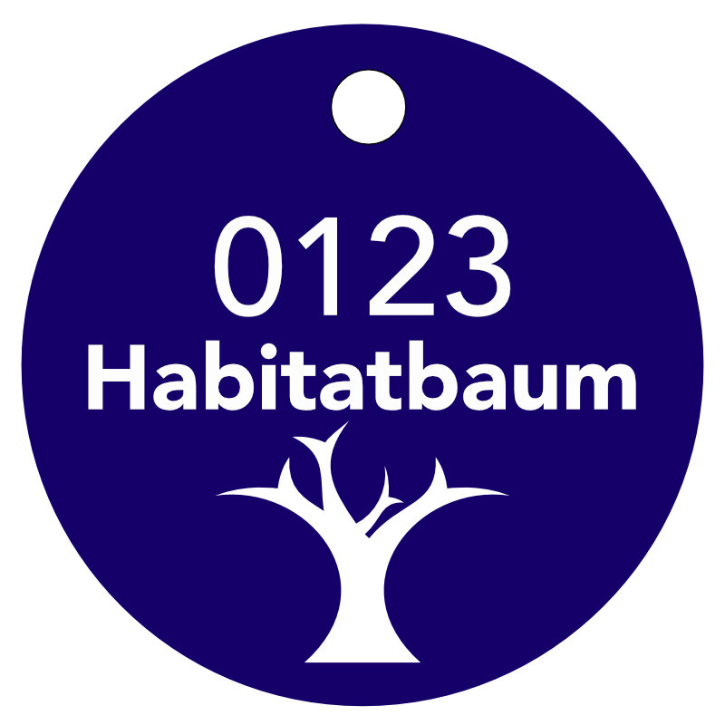 Habitatbaum Logo Plaketten, ø 40 mm, Stärke 1 mm, Aluminium eloxiert, Laserbeschriftung