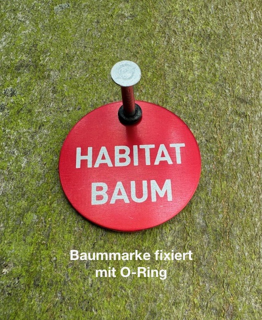 Die elastischen O-Ringe verhindern effektiv das Klappern der Baummarke und ermöglichen ein natürliches Mitwachsen am Baum, ohne dass die Marke einwächst oder der Baum beschädigt wird. In Kombination mit unserem Spezialnagel (mit 2–3 cm Überstand) lassen sich die Marken flexibel und baumschonend anbringen.